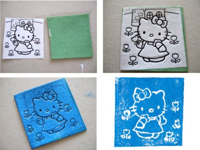 Si certaines zones ne sont pas imprimées, repasser dans les creux de la gravure avec l'aiguille à tricoter et recommencer l'encrage.