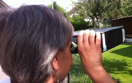 Bien mettre ses mains près du visage pour se protéger des lumières parasites. Les mains peuvent être encore plus proches du visage. On peut aussi tenir les œilletons un peu comme avec des jumelles.