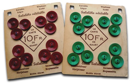Une matière synthétique à base de lait inventée à la fin du 19ème siècle en Allemagne et nomée Galalithe, a été utilisée au début du 20ème siècle, notamment pour la fabrication de boutons, ronds de serviette, bijoux, etc.