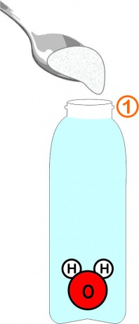 Remplir la bouteille d’eau, en laissant environ 2cm d’air en haut. Ajouter 1 grosse cuillère à soupe de sel fin et mélanger jusqu’à dissolution.