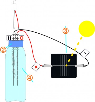 Voici une petite vidéo qui montre bien la production d'hydrogène et d'oxygène à partir d'eau.