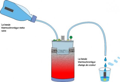 eintroduce water into the aquifer. The water will come out warmer on the other side. You can check it with a finger or by comparing the colour of the thermochromic strips on the cold water bottle and the small glass.