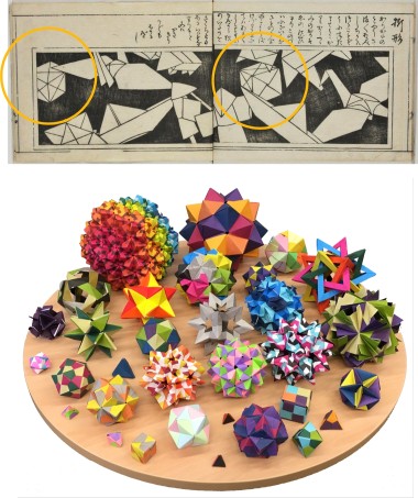 Dans l’ouvrage Ranma Zushiki publié au Japon en 1734, une planche présente des origamis dont un exemplaire est modulaire.