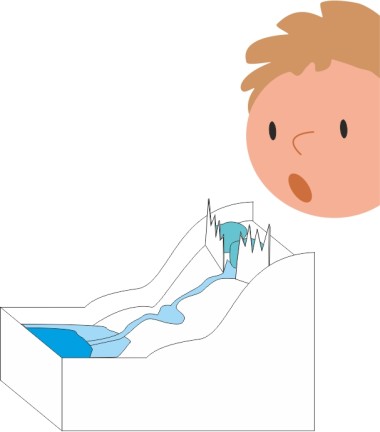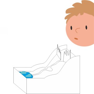 • Placer 2 glaçons derrière les montagnes. Ils vont symboliser un glacier terrestre.