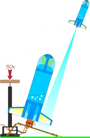 Se reculer de plusieurs mètres et tirer sur la cordelette ; la fusée peut s’élever jusqu’à 100 mètres de hauteur !