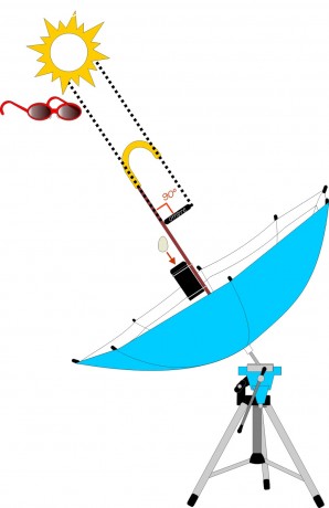 Immer eine Sonnenbrille tragen, um die Augen zu schützen ! Um die optimale Position des Ofens herauszufinden, die Handfläche etwa 20 cm unter den Schirmgriff halten. Der Schatten des Griffs sollte senkrecht zur Hand liegen. Ein Nahrungsmittel (Ei, Tomate) und etwas Wasser in die Keksdose füllen und den Deckel gut aufsetzen. Um ein hartgekochtes Ei zu erhalten dauert es etwas mehr als eine Stunde.
