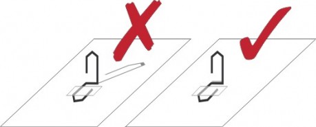 Ein Hilfsmittel für die richtige Positionierung des Ofens kann ganz einfach mit einer Büroklammer und einem Stück Karton gebastelt werden.