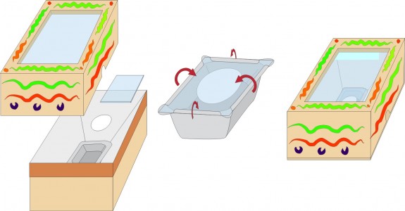 Das Stück Fensterglas auf das Schälchen legen. Den Deckel der Schachtel schliessen.