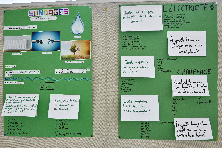 Pour clôturer l'action Enerschool, les élèves ont réalisé des panneaux d'information qui ont été affichés dans le hall d'entrée du CO pendant deux semaine à la rentrée d'automne 2019.