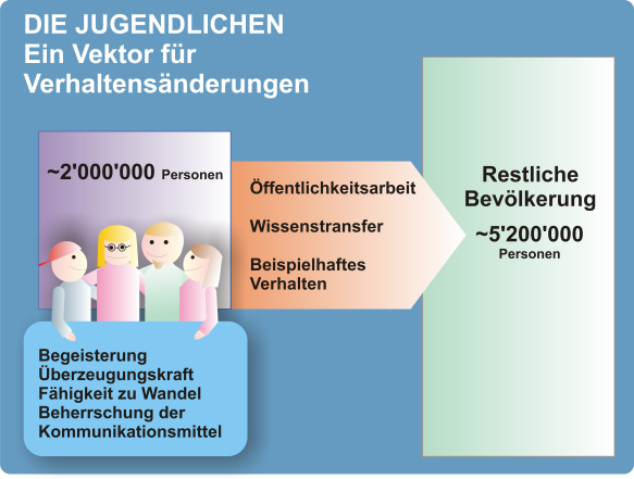- juvene unterstützt die Aktivitäten von Jugendlichen im Bereich Umwelt, um ein breiteres Publikum erreichen und beeinflussen zu können.