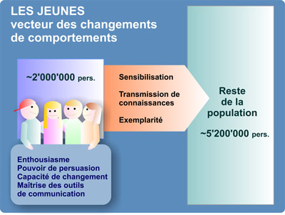 - Les nouvelles générations représentent un potentiel considérable pour transmettre l'information au sein de toute la population et susciter le changement et les décisions favorables à l'environnement.