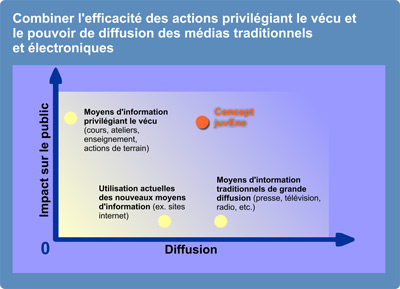 JuvEne, par une approche novatrice, exploite toute la potentialité des nouvelles technologies de l'information en le combinant avec les avantages indéniables que représentent les outils traditionnels de transmission de l’information et du savoir, notamment des actions concrètes sur le terrain !